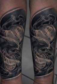 写实的黑白怀表手臂纹身图案