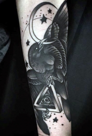 手臂独特的黑白乌鸦和月亮眼睛三角形纹身图案