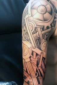 手臂令人印象深刻的未来黑白机械纹身图案
