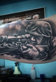 手臂非常逼真的黑白二战狙击手纹身图案