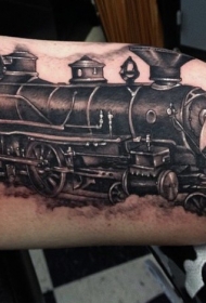 难以置信的黑白火车头手臂纹身图案