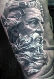 黑白海神雕像写实手臂纹身图案