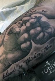 手臂写实风格的黑白时钟与家庭手纹身图案