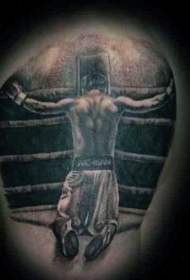 手臂黑白的祈祷拳击手背影纹身图案