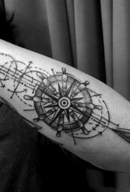 独特设计的黑白船舵与箭头手臂纹身图案