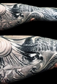 手臂写实的精美老鹰纹身图案
