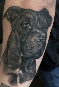 手臂可爱的手黑白狗头像纹身图案