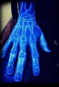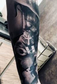 手臂令人难以置信的黑白眼睛与DNA符号纹身图案