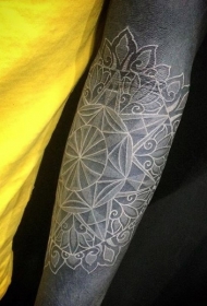 很棒的白色几何装饰和眼睛手臂纹身图案