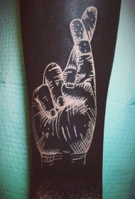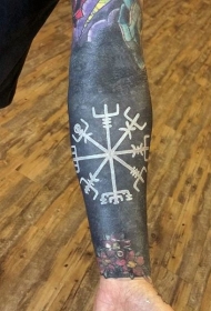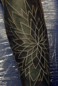 手臂大面积黑色与美丽的白色花朵纹身图案