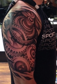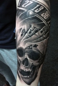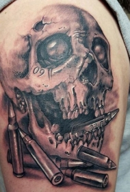 非常逼真的黑白骷髅和子弹手臂纹身图案