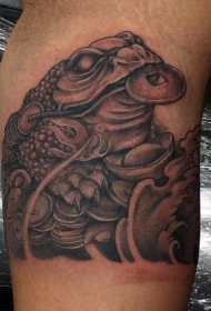 手臂黑白组合的神秘棺材和手眼睛纹身图案