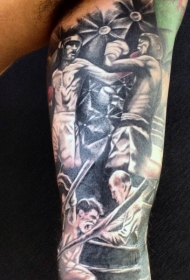 手臂卡通风格黑白神秘神圣战士纹身图案