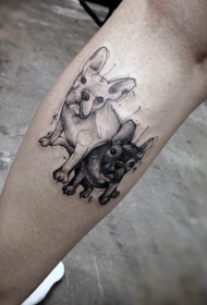手臂自然的黑白猫头鹰与枫叶纹身图案