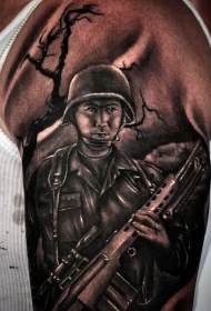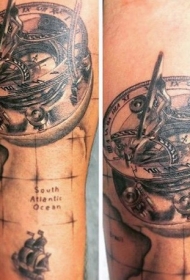 手臂非常逼真的黑白古怪罗盘地图纹身图案