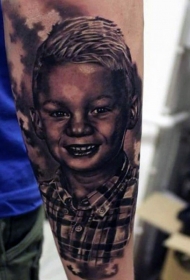 简单的黑白棺材与骷髅骨头手臂纹身图案