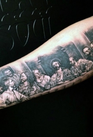 手臂黑白死亡骷髅和头巾匕首纹身图案