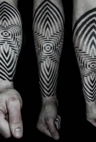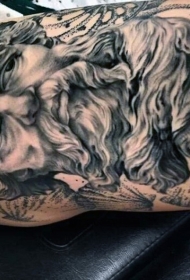 手臂印象深刻的黑白线条月亮与孤独的人纹身图案