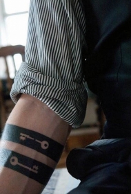 手臂简单异常设计的黑白钥匙臂环纹身图案