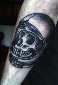 手臂很酷的old school黑白骷髅头盔纹身图案