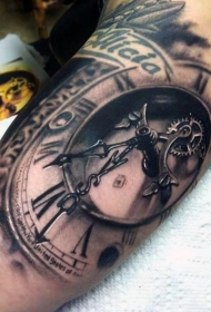 手臂华丽逼真的黑白旧机械时钟纹身图案