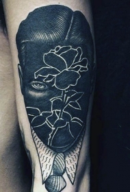 手臂很酷的幻想世界黑白神秘战士纹身图案