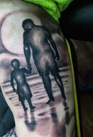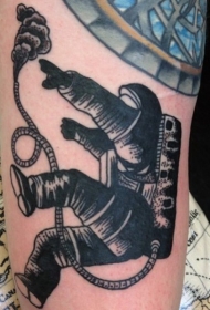 手臂有趣的黑白宇航员和鲨鱼头纹身图案