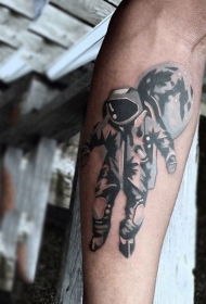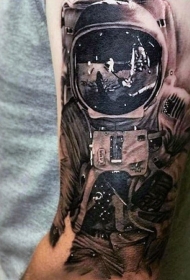 令人难以置信手臂黑白月亮宇航员纹身图案