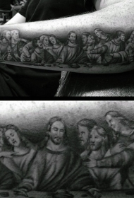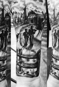 手臂可爱的黑白人像剪影与装饰纹身图案