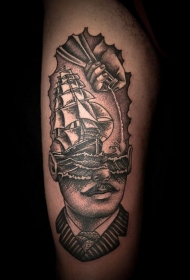 大臂令人毛骨悚然的设计黑白眼睛纹身图案