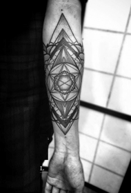 手臂亚洲风格的汉字和眼睛手黑白纹身图案