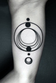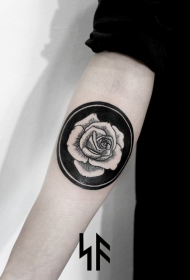 简单的小玫瑰和黑色圆圈手臂纹身图案