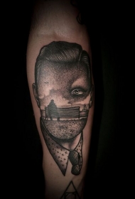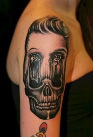 手臂可怕的设计黑白女性肖像结合骷髅纹身图案