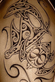 手臂原始风格的黑白大鲸鱼花卉纹身图案