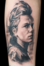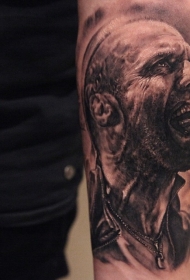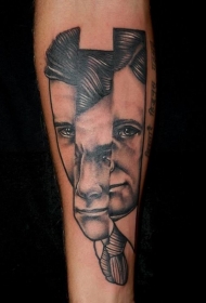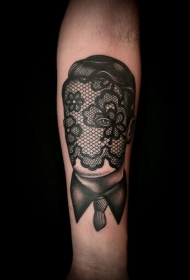手臂时尚风格的黑白蕾丝男性脸纹身图案