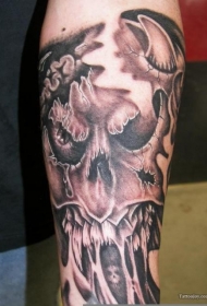 手臂恐怖风格黑白骷髅和眼球纹身图案