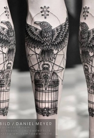手臂神秘的黑白大乌鸦与笼子符号纹身图案