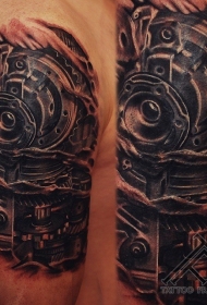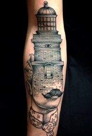 手臂不寻常设计的黑白半人半灯塔纹身图案