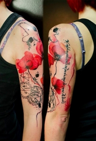 手臂恐怖风格女人肖像与心脏骨骼纹身图案