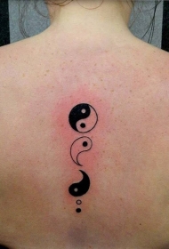 女生颈部卷曲的黑白阴阳八卦符号纹身图案