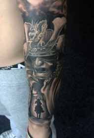 手臂惊人的黑白武士头盔纹身图案