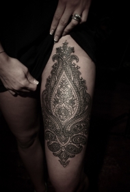 大腿黑色线条印花图腾纹身图案