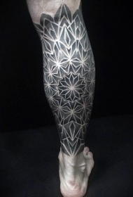 小腿黑白点刺花朵形状纹身图案