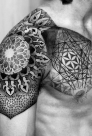 半甲黑白花几何饰品个性纹身图案