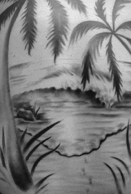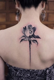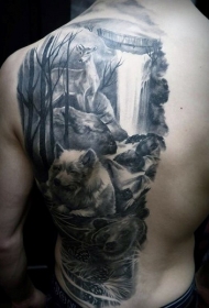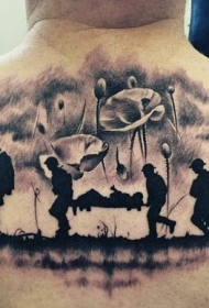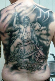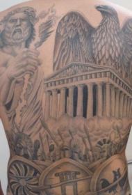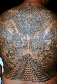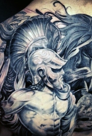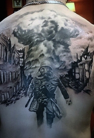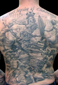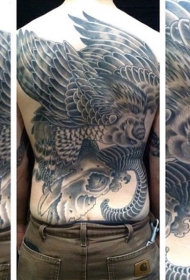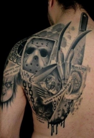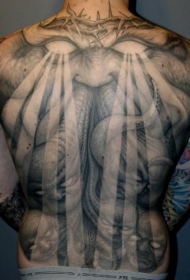 背部非常可怕的黑灰恶魔肖像纹身图案