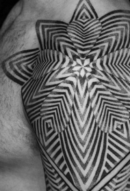 肩膀和背部黑白的翅膀羽毛纹身图案