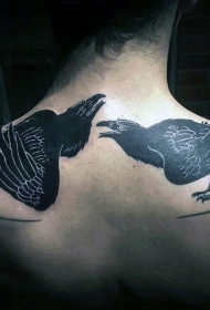 背部简单设计的黑白乌鸦纹身图案