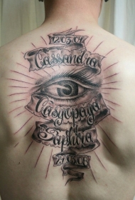 背部黑白纪念字母眼睛纹身图案