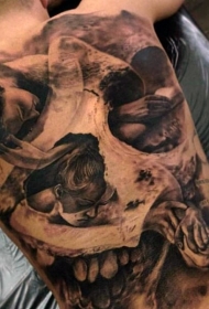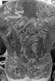 背部惊人的黑白大规模西方骷髅纹身图案