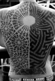 背部几何风格黑白装饰纹身图案